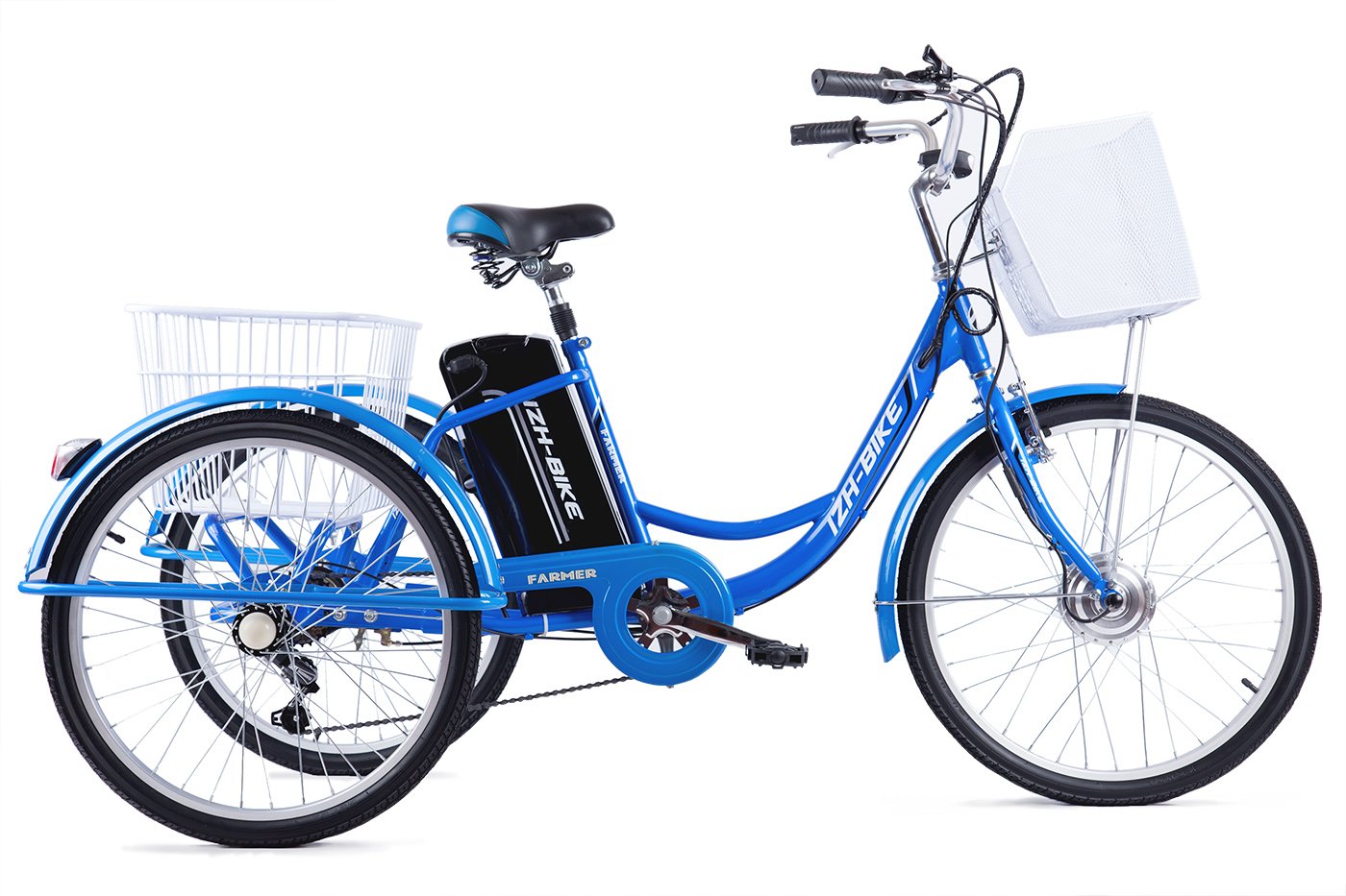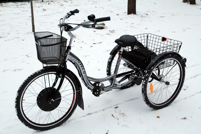 Российский трехколесный электровелосипед с комфортным сидением.